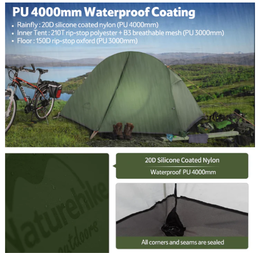 - Waterproof & Windproof: PU 4000mm 20D nylon rainfly and 7001 aluminum poles ensure dry and secure shelter in harsh weather.